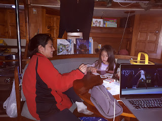It's 11:12pm and I'm playing cards and Lego with Aila in the V berth.